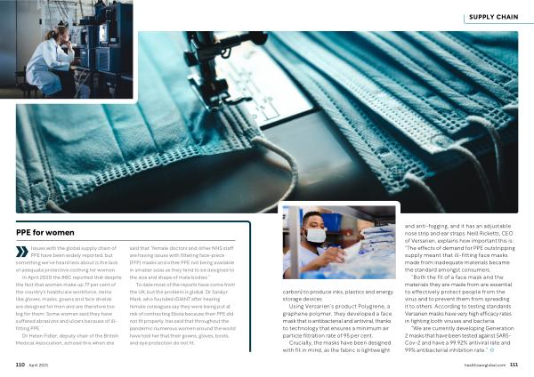 In April 2020 the BBC reported that despite the fact that women make up 77 per cent of the country ' s healthcare workforce , items like gloves , masks , gowns and face shields are designed for men and are therefore too big for them . Some women said they have suffered abrasions and ulcers because of illfitting PPE . `