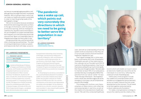 DR LAWRENCE ROSENBERG PRESIDENT AND CEO , JEWISH GENERAL HOSPITAL