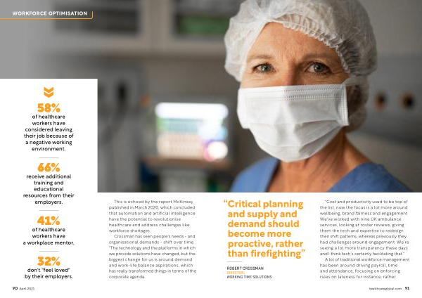 " Cost and productivity used to be top of the list , now the focus is a lot more around wellbeing , brand fairness and engagement . We ' ve worked with nine UK ambulance services , looking at roster reviews , giving them the tech and expertise to redesign their shift patterns , whereas previously they had challenges around engagement . We ’ re seeing a lot more transparency these days and I think tech ’ s certainly facilitating that ."
