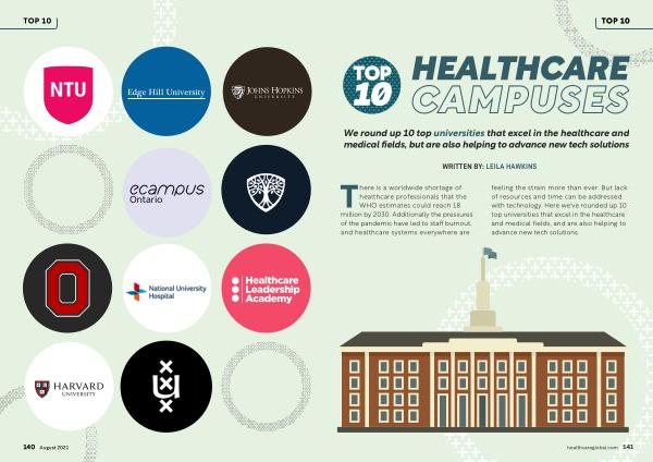 There is a worldwide shortage of healthcare professionals that the WHO estimates could reach 18 million by 2030 . Additionally the pressures of the pandemic have led to staff burnout , and healthcare systems everywhere are feeling the strain more than ever . But lack of resources and time can be addressed with technology . Here we ' ve rounded up 10 top universities that excel in the healthcare and medical fields , and are also helping to advance new tech solutions .