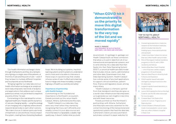 Importance of partnership with Health Catalyst Commenting on the foundational importance to Northwell ’ s ecosystem , Paradis pointed out the value Health Catalyst , Athena , Sutherland and Allscripts .
