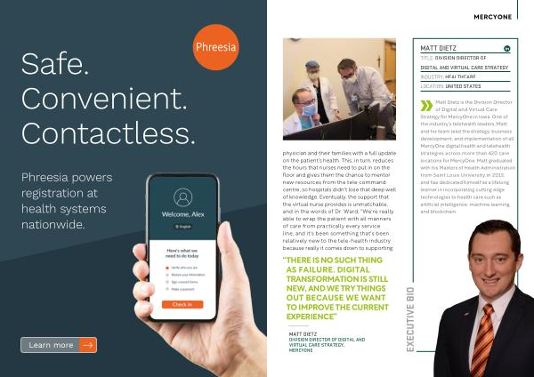 Matt Dietz is the Division Director of Digital and Virtual Care Strategy for MercyOne in Iowa . One of the industry ’ s telehealth leaders , Matt and his team lead the strategy , business development , and implementation of all MercyOne digital health and telehealth strategies across more than 420 care locations for MercyOne . Matt graduated with his Masters of Health Administration from Saint Louis University in 2015 , and has dedicated himself as a lifelong learner in incorporating cutting edge technologies to health care such as artificial intelligence , machine learning , and blockchain .