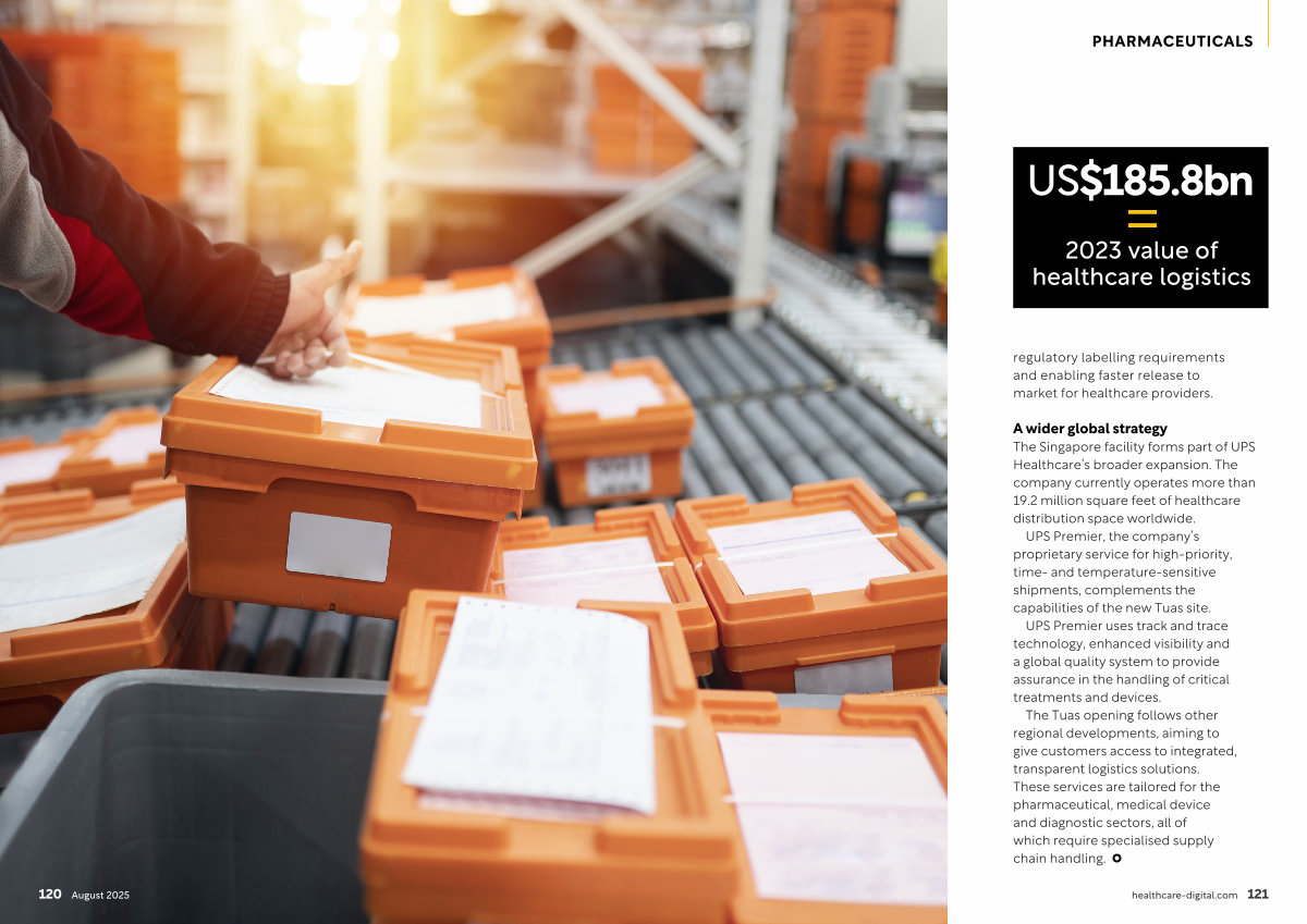 The Tuas opening follows other regional developments, aiming to give customers access to integrated, transparent logistics solutions. These services are tailored for the pharmaceutical, medical device and diagnostic sectors, all of which require specialised supply chain handling. healthcare-digital. com 121