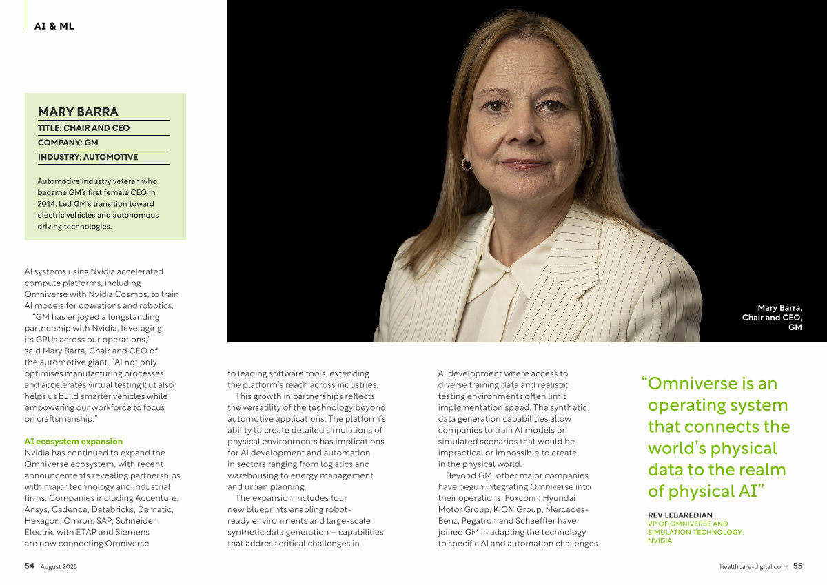 Beyond GM, other major companies have begun integrating Omniverse into their operations. Foxconn, Hyundai Motor Group, KION Group, Mercedes- Benz, Pegatron and Schaeffler have joined GM in adapting the technology to specific AI and automation challenges.