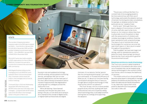 Then he added “ we have seen large cost savings , with for example less spend on petrol for travel , these savings can be put back into the Trust ’ s work and it ’ s good for the environment as well ”. clinicians . It ’ s not about a ‘ techie ’ person like me coming along and saying ‘ I can make your work easier , or increase the efficiency of what you do ,’ it ’ s about our clinicians having conversations along the lines of ‘ have you thought about using this technology to help improve the care for our patients ’?”