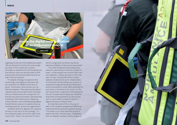 An important part of this is the use of data . From a patient perspective NWAS has implemented an electronic patient record . " This allows us to have real time access to patient records ," Harrison says . " Integrated with our dispatch system it starts to give us