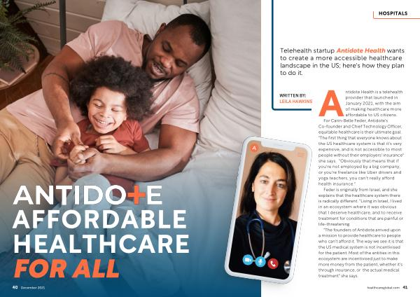 " The founders of Antidote arrived upon a mission to provide healthcare to people who can ' t afford it . The way we see it is that the US medical system is not incentivised for the patient . Most of the entities in this ecosystem are incentivised just to make more money from the patient , whether it ' s through insurance , or the actual medical treatment " she says . healthcareglobal . com 41