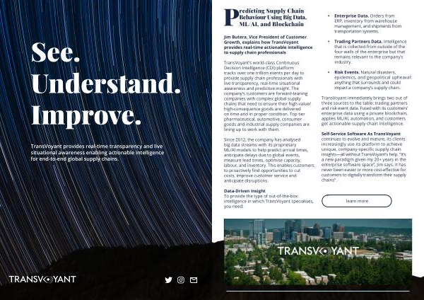 TransVoyant provides real-time transparency and live situational awareness enabling actionable intelligence for end-to-end global supply chains .