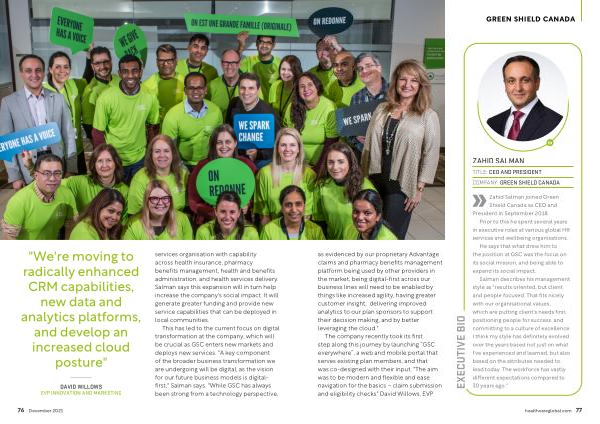 TITLE : CEO AND PRESIDENT COMPANY : GREEN SHIELD CANADA as evidenced by our proprietary Advantage claims and pharmacy benefits management platform being used by other providers in the market , being digital-first across our business lines will need to be enabled by things like increased agility , having greater customer insight , delivering improved analytics to our plan sponsors to support their decision making , and by better leveraging the cloud ."
