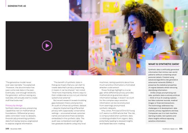 “ The benefit of synthetic data in that guise means that you can start to create data that’ s privacy-preserving, it means it can be shared,” Iain noted.“ And more importantly, there’ s ways to then collaborate across not just internal systems but external.”