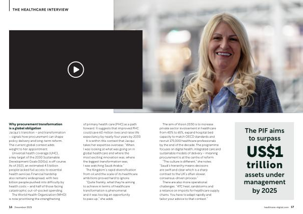 It is within this context that Jacqui takes her expertise overseas:“ When I was looking at what was going on in global healthcare and where the most exciting innovation was, where the biggest transformation was, I was watching Saudi Arabia.”