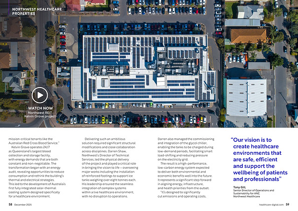 Kelvin Grove operates 24 / 7 as Queensland’ s largest blood collection and storage facility, with energy demands that are both constant and non-negotiable. The transformation began with an energy audit, revealing opportunities to reduce consumption and rethink the building’ s thermal and electrical strategies. This led to the development of Australia’ s first fully integrated solar-thermal cooling system designed specifically for a healthcare environment.