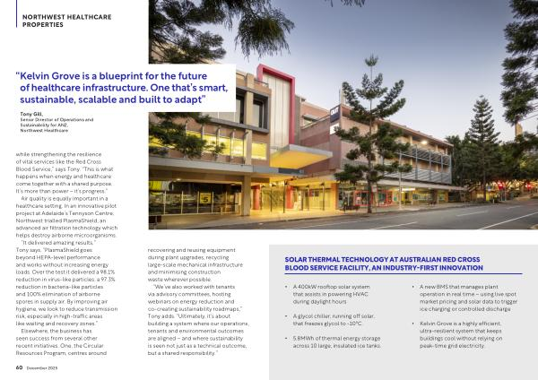 • Kelvin Grove is a highly efficient, ultra-resilient system that keeps buildings cool without relying on peak-time grid electricity.