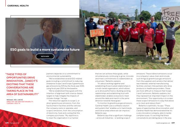 MICHAEL BELLANTIS DIRECTOR , ESG AND SUSTAINABILITY , CARDINAL HEALTH partners depends on a commitment to environmental sustainability .