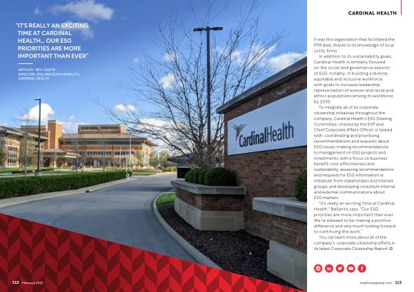 " It ' s really an exciting time at Cardinal Health ," Bellantis says . " Our ESG priorities are more important than ever . We ’ re pleased to be making a positive difference and very much looking forward to continuing the work .”