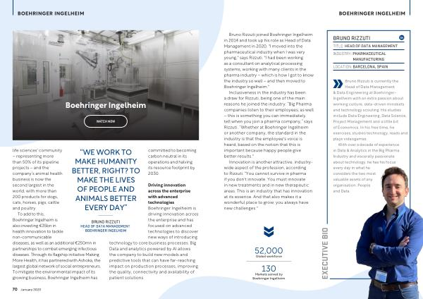 Bruno Rizzuti joined Boehringer Ingelheim in 2014 and took up his role as Head of Data Management in 2020 . " I moved into the pharmaceutical industry when I was very young ," says Rizzuti . " I had been working as a consultant on analytical processing systems , working with many clients in the pharma industry – which is how I got to know the industry so well – and then moved to Boehringer Ingelheim ."