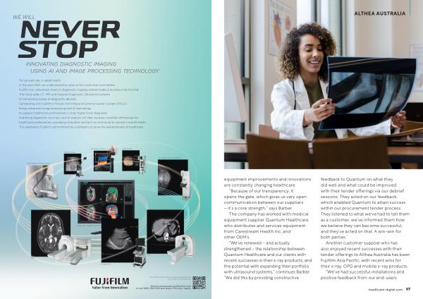 Another customer supplier who has also enjoyed recent successes with their tender offerings to Althea Australia has been Fujifilm Asia Pacific , with recent wins for their x-ray , OPG and mobile x-ray products . “ We ’ ve had successful installations and positive feedback from our end-users