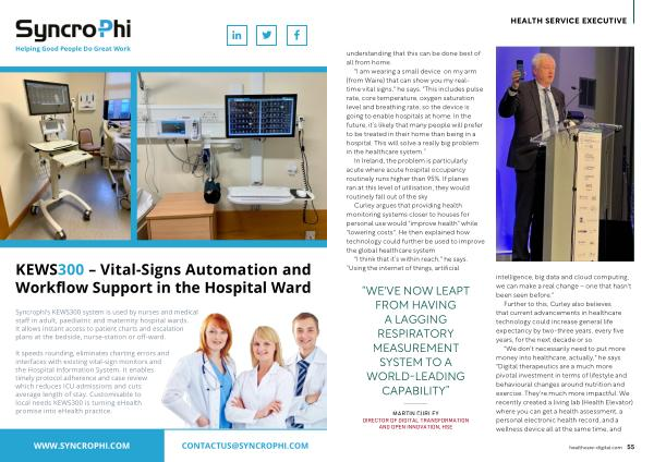 Syncrophi ’ s KEWS300 system is used by nurses and medical staff in adult , paediatric and maternity hospital wards . It allows instant access to patient charts and escalation plans at the bedside , nurse-station or off-ward .