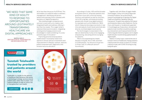 Together with John Shaw of Legato Health Technologies , Curley , in his role as Maynooth University Professor , set up the IDHLSG research working group to develop the Digital Health and Wellness Capability Maturity Framework . This grant was aided by IDA Ireland and Enterprise Ireland , while Medtronic , Roche , Cisco , and Huawei co-funded and supported it . A working group of executives , clinicians and patients meet monthly to build the roadmap , key interventions and measurements that will chart and guide Ireland ’ s progress over its digital health decade , towards being a global leader in digital health .