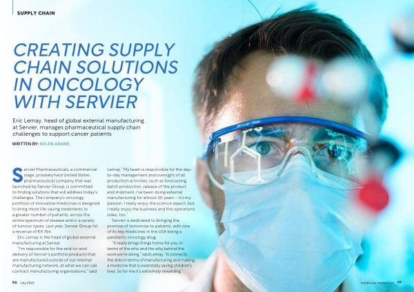 Eric Lemay , head of global external manufacturing at Servier , manages pharmaceutical supply chain challenges to support cancer patients