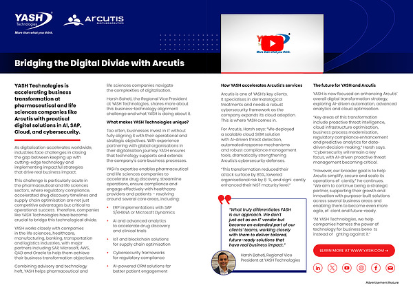 YASH Technologies is accelerating business transformation at pharmaceutical and life sciences companies like Arcutis with practical digital solutions in AI, SAP, Cloud, and cybersecurity.
