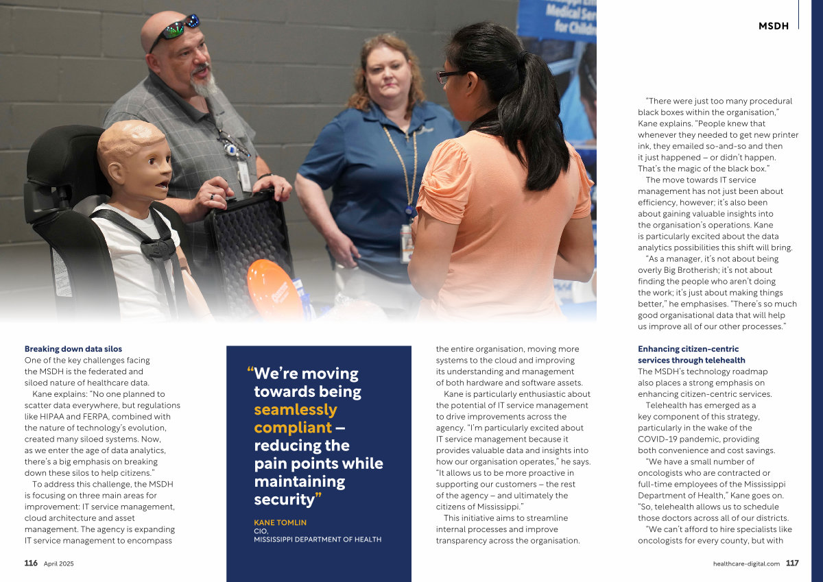 To address this challenge, the MSDH is focusing on three main areas for improvement: IT service management, cloud architecture and asset management. The agency is expanding IT service management to encompass
