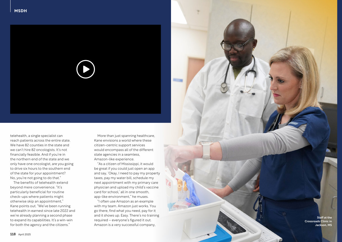 “ As a citizen of Mississippi, it would be great if you could just open an app and say,‘ Okay, I need to pay my property taxes, pay my water bill, schedule my next appointment with my primary care physician and upload my child’ s vaccine card for school,’ all in one smooth, app-like environment,” he muses.