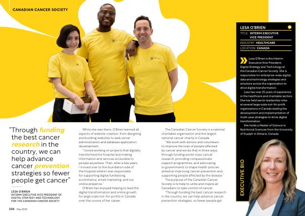 LESA O ' BRIEN INTERIM EXECUTIVE VICE PRESIDENT OF DIGITAL STRATEGY AND TECHNOLOGY FOR THE CANADIAN CANCER SOCIETY