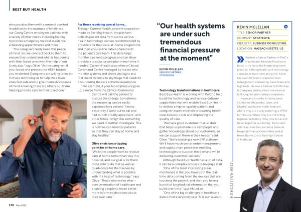 Olive envisions a tipping point for at-home care . “ We know people want to receive care at home rather than stay in a hospital , and our goal is for them to be able to do that as well as to advocate for themselves by understanding what is possible with the help of technology ,” says Olive . “ That ' s what we ’ re after – consumerisation of healthcare and enabling people to make better , more informed decisions about their own care .”
