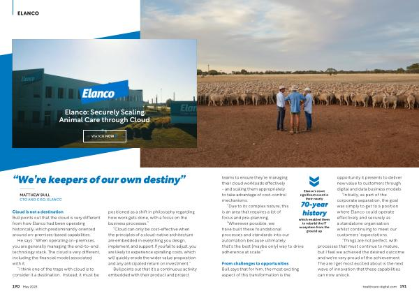 Cloud is not a destination Bull points out that the cloud is very different from how Elanco had been operating historically , which predominantly oriented around on-premises-based capabilities .