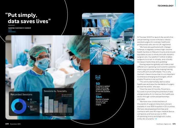 “ We have now conducted tens of thousands of surgical interactions and are available in over 800 hospitals in 50 countries . We have developed partnerships and contracts with over 40 major medical device companies and have access to 90 % of operating rooms and diagnostic suites in the UK , US and EU .” healthcare-digital . com 101