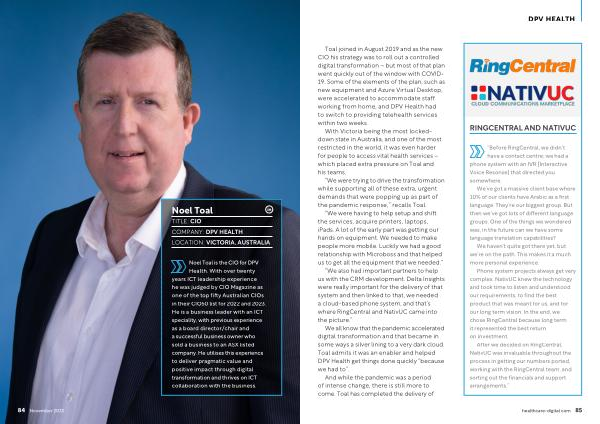 Noel Toal TITLE : CIO COMPANY : DPV HEALTH LOCATION : VICTORIA , AUSTRALIA