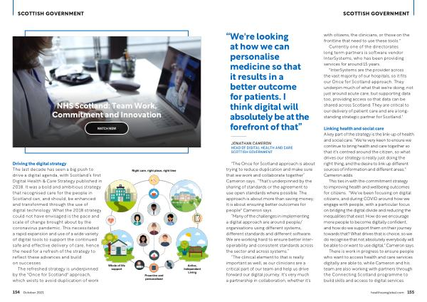 Driving the digital strategy The last decade has seen a big push to drive a digital agenda , with Scotland ’ s first Digital Health & Care Strategy published in 2018 . It was a bold and ambitious strategy that recognised care for the people in Scotland can , and should , be enhanced and transformed through the use of digital technology . What the 2018 strategy could not have envisaged is the pace and scale of change brought about by the coronavirus pandemic . This necessitated a rapid expansion and use of a wide variety of digital tools to support the continued safe and effective delivery of care , hence the need for a refresh of the strategy to reflect these advances and build on successes .