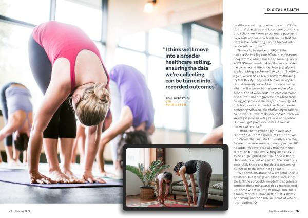 PAUL MCPARTLAN CEO , PLACES LEISURE healthcare setting , partnering with CCGs , doctors ' practices and local care providers , and I think we ' ll move towards a payment by results model , which will ensure that the data we ' re collecting can be turned into recorded outcomes ."
