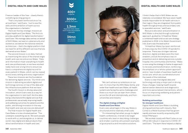 The digital strategy at Digital Health and Care Wales Evans sees advantages in the way Wales is structured and its relatively small scale .