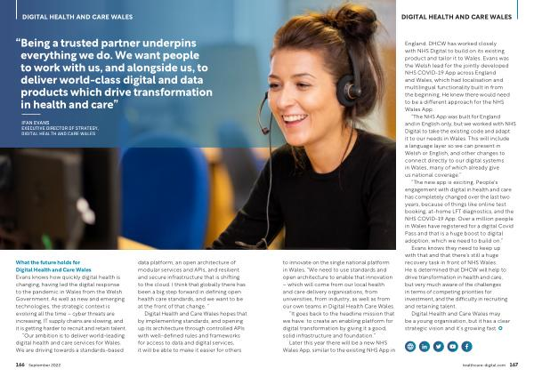 “ The new app is exciting . People ' s engagement with digital in health and care has completely changed over the last two years , because of things like online test booking , at-home LFT diagnostics , and the NHS COVID-19 App . Over a million people in Wales have registered for a digital Covid Pass and that is a huge boost to digital adoption , which we need to build on .”