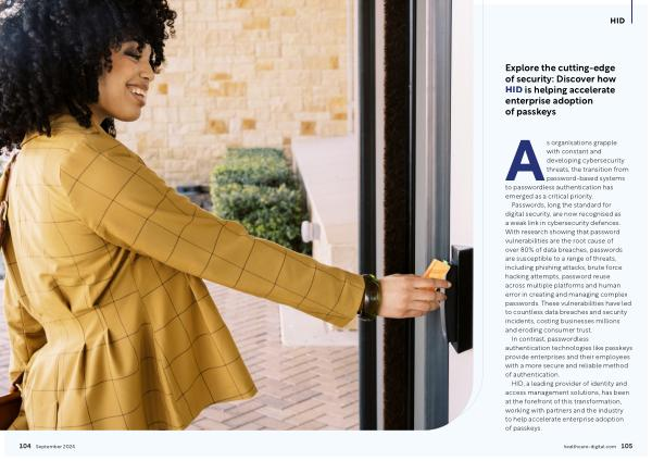 HID , a leading provider of identity and access management solutions , has been at the forefront of this transformation , working with partners and the industry to help accelerate enterprise adoption of passkeys . healthcare-digital . com 105