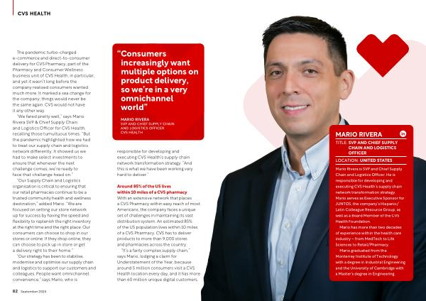 Mario Rivera is SVP and Chief Supply Chain and Logistics Officer . He is responsible for developing and executing CVS Health ’ s supply chain network transformation strategy . Mario serves as Executive Sponsor for JUNTOS , the company ’ s Hispanic / Latin Colleague Resource Group , as well as a Board Member of the CVS Health Foundation .