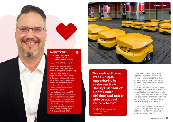 Jamie Tatum is Lead Director , Supply Chain Project Execution . His team is responsible for planning , organising , and managing our supply chain investments related to changes in robotics , automation , and infrastructure . Jamie recently led the implementation of the AutoStore / Tompkins automation in our Lumberton , New Jersey Distribution Center .