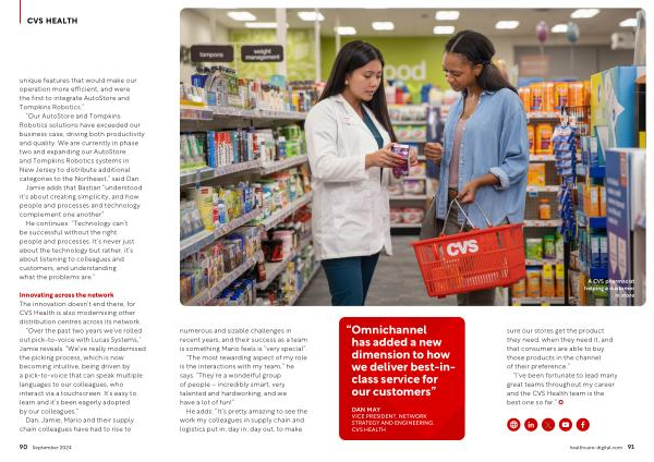 Innovating across the network The innovation doesn ’ t end there , for CVS Health is also modernising other distribution centres across its network .