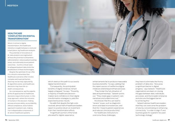 He stresses that this can lead to “ severe ” issues , such as diagnostic errors and data inconsistencies , and that this “ impacts patient experiences and reduces clinical productivity ”. For healthcare institutions to overcome these challenges , they have to eliminate the thorny problem of data silos . “ Silos pose a significant barrier to digital progress ,” says Sateesh . “ Healthcare organisations are keen on closing the gaps between data , individuals , processes , and the broader enterprise and silos are the biggest barrier to achieving this .”