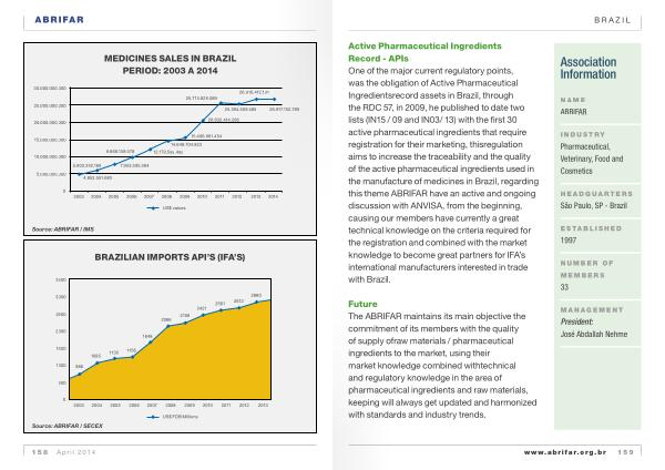 Active Pharmaceutical Ingredients Record - APIs One of the major current regulatory points , was the obligation of Active Pharmaceutical Ingredientsrecord assets in Brazil , through the RDC 57 , in 2009 , he published to date two lists ( IN15 / 09 and IN03 / 13 ) with the first 30 active pharmaceutical ingredients that require registration for their marketing , thisregulation aims to increase the traceability and the quality of the active pharmaceutical ingredients used in the manufacture of medicines in Brazil , regarding this theme ABRIFAR have an active and ongoing discussion with ANVISA , from the beginning , causing our members have currently a great technical knowledge on the criteria required for the registration and combined with the market knowledge to become great partners for IFA ’ s international manufacturers interested in trade with Brazil .