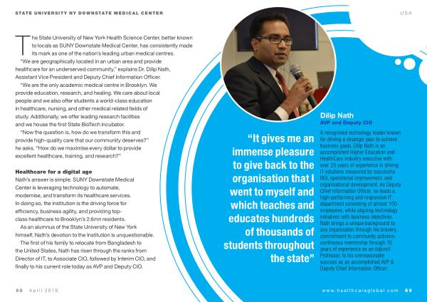 Healthcare for a digital age Nath ’ s answer is simple . SUNY Downstate Medical Center is leveraging technology to automate , modernise , and transform its healthcare services . In doing so , the institution is the driving force for efficiency , business agility , and providing topclass healthcare to Brooklyn ’ s 2.6mn residents .