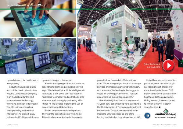 Innovation runs deep at EHS and not the one to sit on its laurels , the Dubai-based company is on the lookout for the next state-of-the-art technology ; turning its attention to telehealth , Tele-ICU , virtual consulting , interoperability , and artificial intelligence . As a result , Babu believes that EHS is ready for any