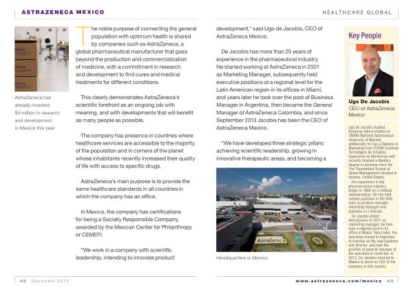 development ,” said Ugo de Jacobis , CEO of AstraZeneca Mexico .
