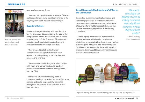 Social Responsibility , Salcobrand ’ s Pillar in the Community