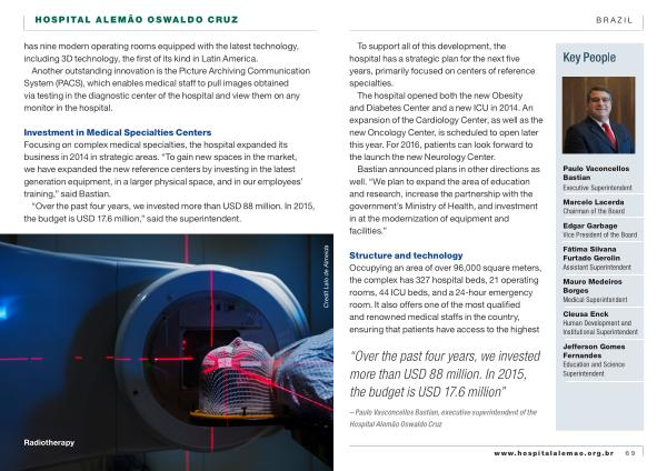 – Paulo Vasconcellos Bastian , executive superintendent of the Hospital Alemão Oswaldo Cruz www . hospitalalemao . org . br 69