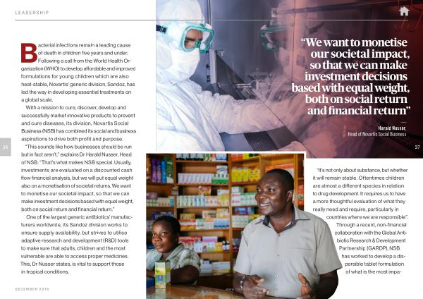 “ This sounds like how businesses should be run but in fact aren ’ t ,” explains Dr Harald Nusser , Head of NSB . “ That ’ s what makes NSB special . Usually , investments are evaluated on a discounted cash flow financial analysis , but we will put equal weight also on a monetisation of societal returns . We want to monetise our societal impact , so that we can make investment decisions based with equal weight , both on social return and financial return .”