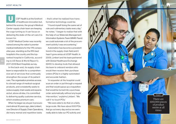 Automation has become a prevalent trend in the supply chain field and it hasn ’ t gone amiss at UCSF Health . In 2009 , Limbert and his team partnered with Global Healthcare Exchange ( GHX ) to develop tools that allowed his team to onboard vendors who would then receive their purchase orders ( POs ) in a highly-automated and accurate fashion .