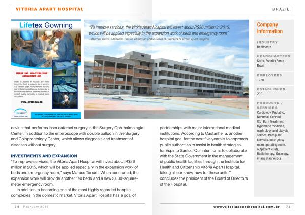 ospital will invest about R $ 26 million in 2015 , xpansion work of beds and emergency room ” e Board of Directors of Vitória Apart Hospital